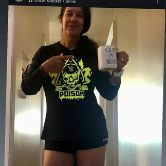 We have to give it to Val, who not only put on all of her 🅿️☠️🅿️ gear but also gave a nod to our electrolyte and gel sponsor, Hammer Nutrition Canada. Very creative Val - the team applauds this well thought out swag brag.